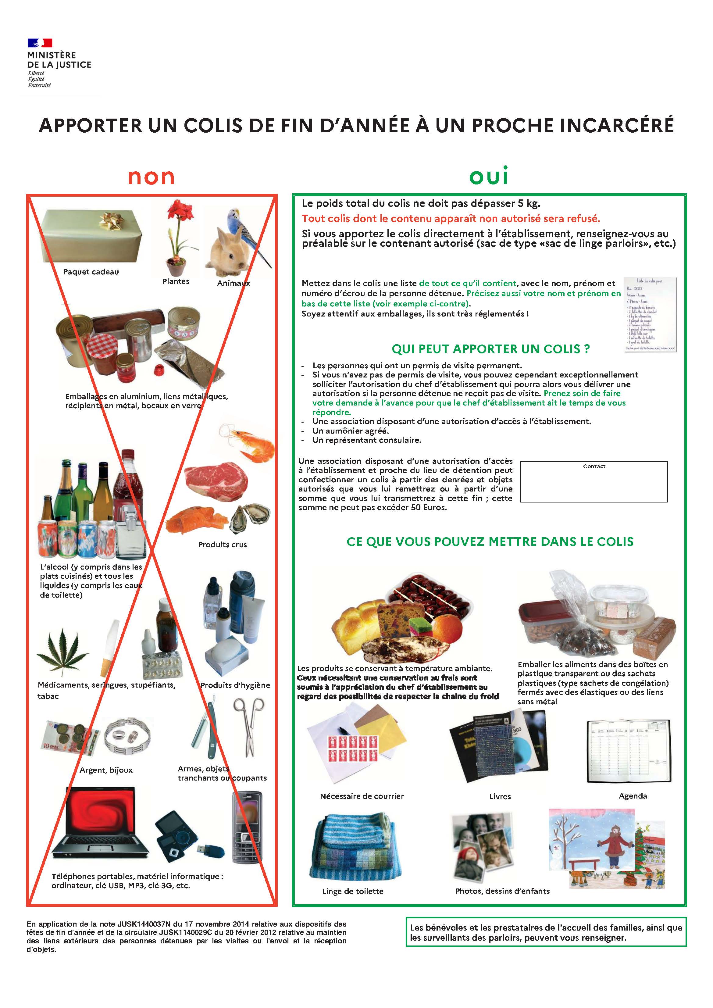 Les familles qui rendent visite aux personnes détenues sont autorisées à leur déposer du linge à l’occasion des parloirs. Pour cela, elles doivent disposer le linge dans un sac avec le nom, prénom et numéro d’écrou de la personne détenue ainsi que la feuille d’inventaire sur laquelle sera répertorié l’ensemble des vêtements et objets contenus dans le sac. Le nombre d’objets et de vêtements est limité pour éviter l’encombrement des cellules.